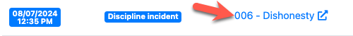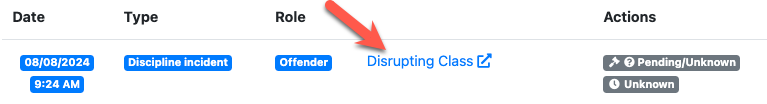Student Quick Lookup: Go to the student's page by using the quick lookup feature. Then, scroll down and click on the incident's name to view it.