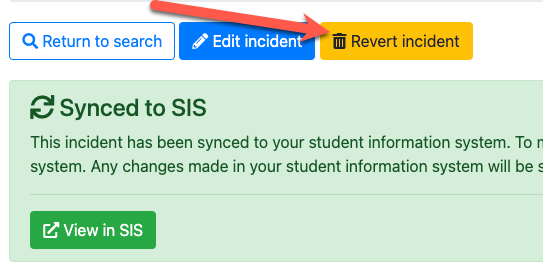 After an incident has been synced to the student information system, you can click the Revert incident button in the Reviewer area.