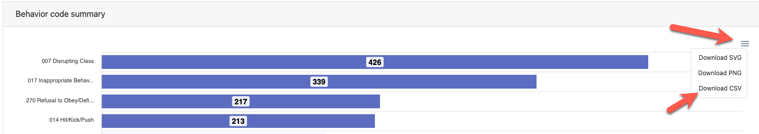 For bar graphs, you can click the hamburger menu (three stacked lines) in the top-right corner to download a CSV file of the data shown in the graph.