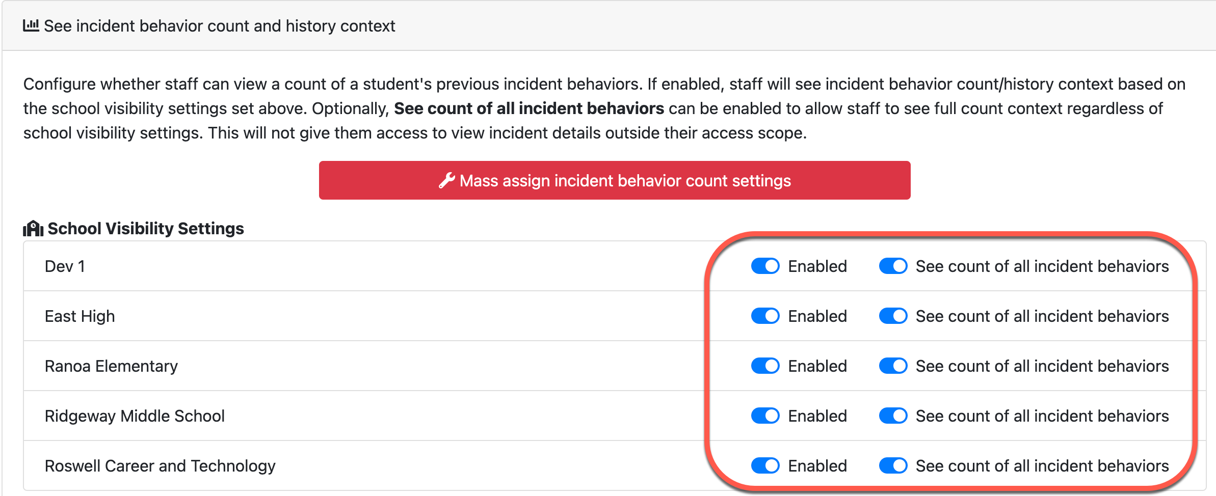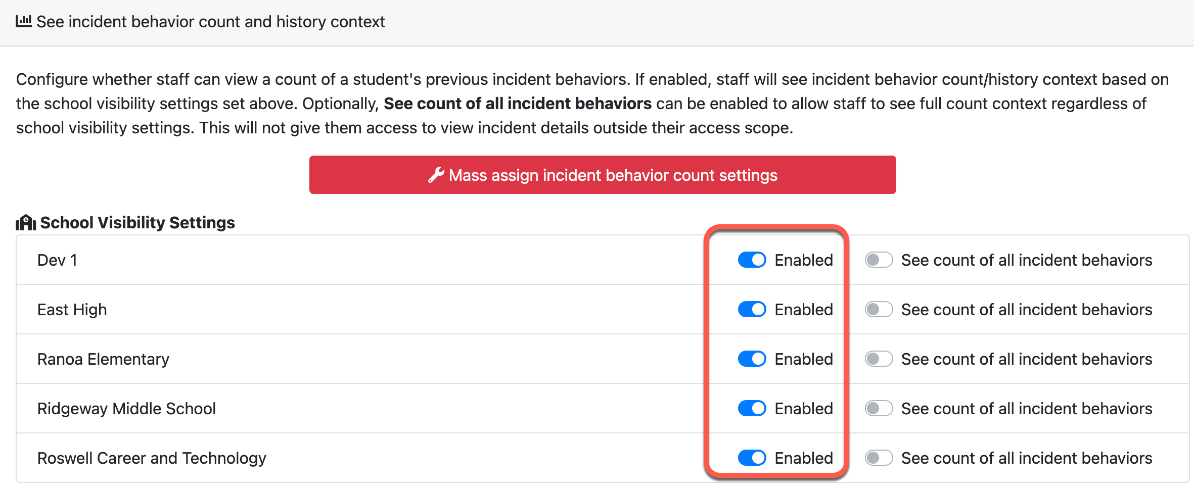 This option is recommended for schools using a progressive discipline matrix based on cumulative discipline incident counts while still protecting student privacy. When incident visibility is enabled in the section above, it overrides the settings here and permits teachers to view incident details.