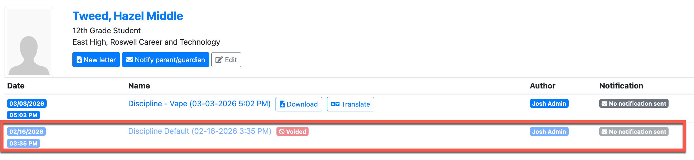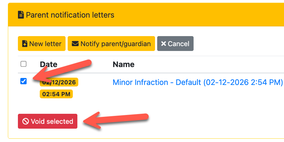 simpldiscipline uses voiding instead of deletion to ensure there is a complete historical record of all letters that have been generated. This is important because a letter may have already been printed or sent outside of the system, and removing it entirely could eliminate that documentation.
