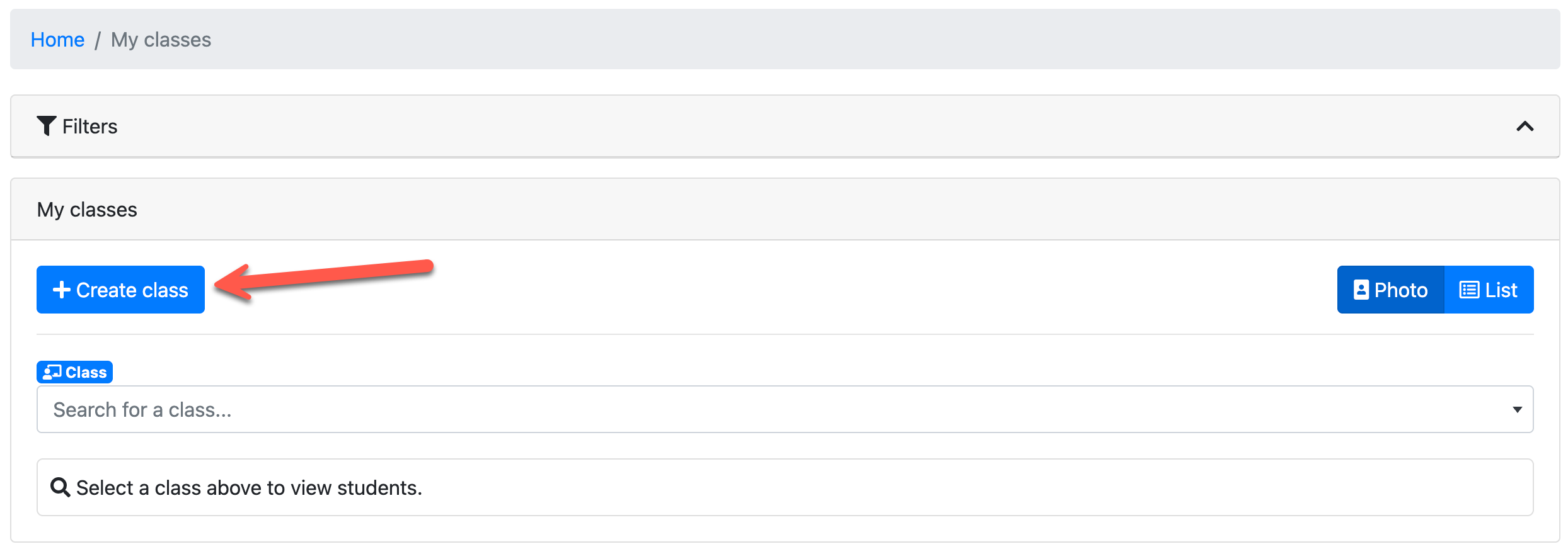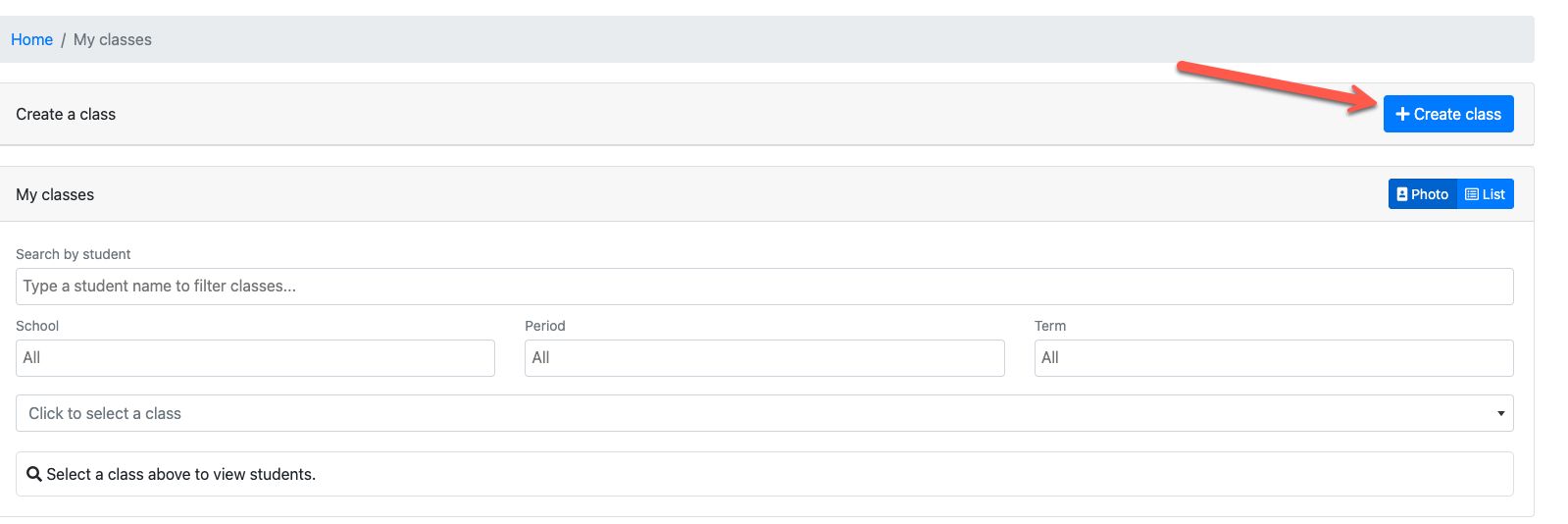 Enter the required details, including the class name, school location (if you have access to multiple locations, a primary location must be selected), and term.