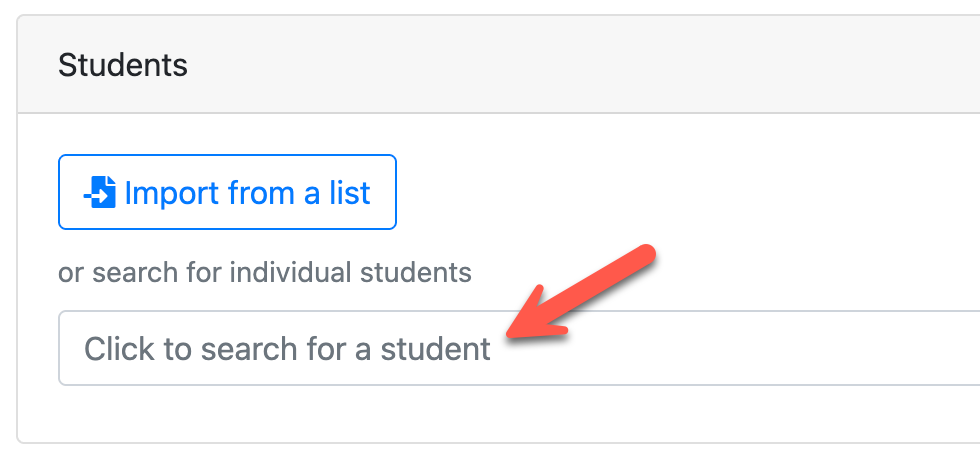 Next, select your students. Teachers can choose any student within their school and also have the option to mass import students by course or grade level. School administrators have additional import options, including students by IEP/504 status or from a list containing the 25 students with the highest number of discipline incidents this school year.