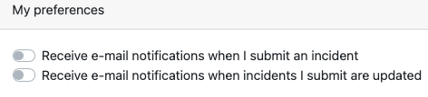 This option triggers an email notification whenever you make updates to an incident you have previously submitted. To reduce inbox clutter, it may be advisable to turn this setting off as well.