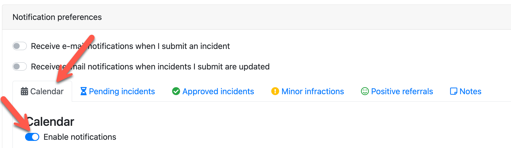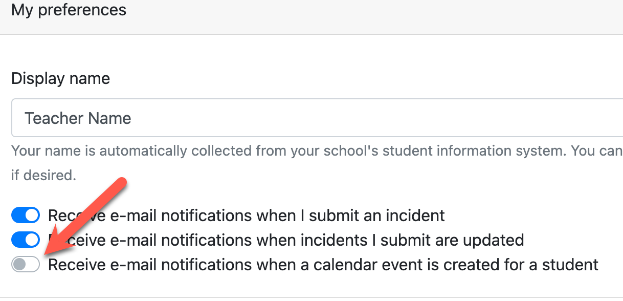 This feature helps ensure teachers are kept informed without requiring administrators to manually send notifications or relying on staff to regularly check the incident calendar.